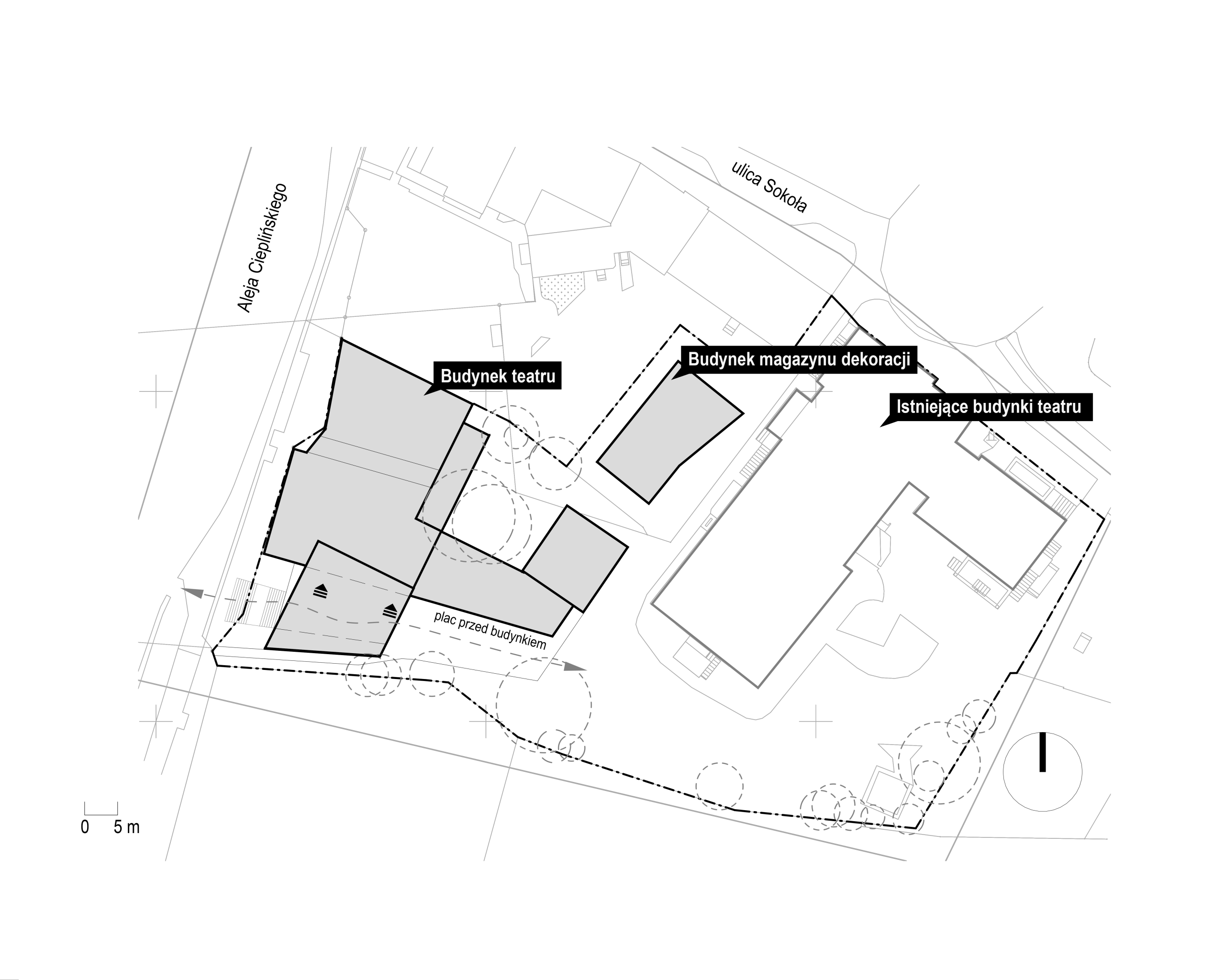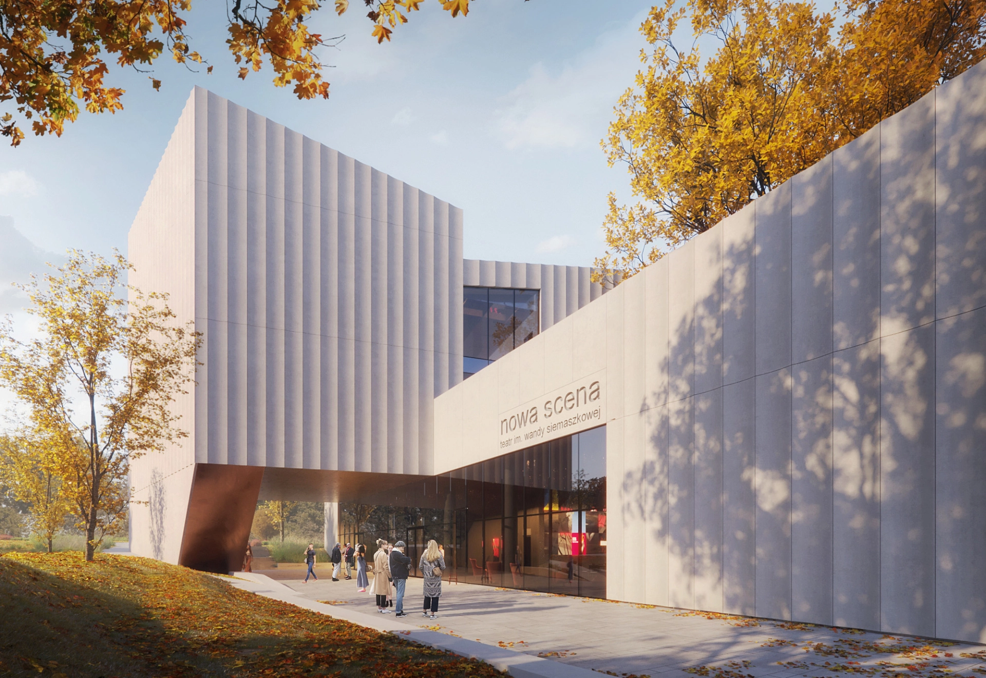 Nowa Scena (eng. New Stage) is an independent building of the Wanda Siemaszkowa Theatre, located in the heart of Rzeszów along one of the city’s main arteries – Aleja Cieplińskiego. The facility will serve as a new part of the institution, operating alongside the historic theatre building on Sokoła Street. The primary goal was to expand the theatre’s functionality, increase its accessibility, and create a modern space for presenting a variety of theatrical, educational, and exhibition formats.