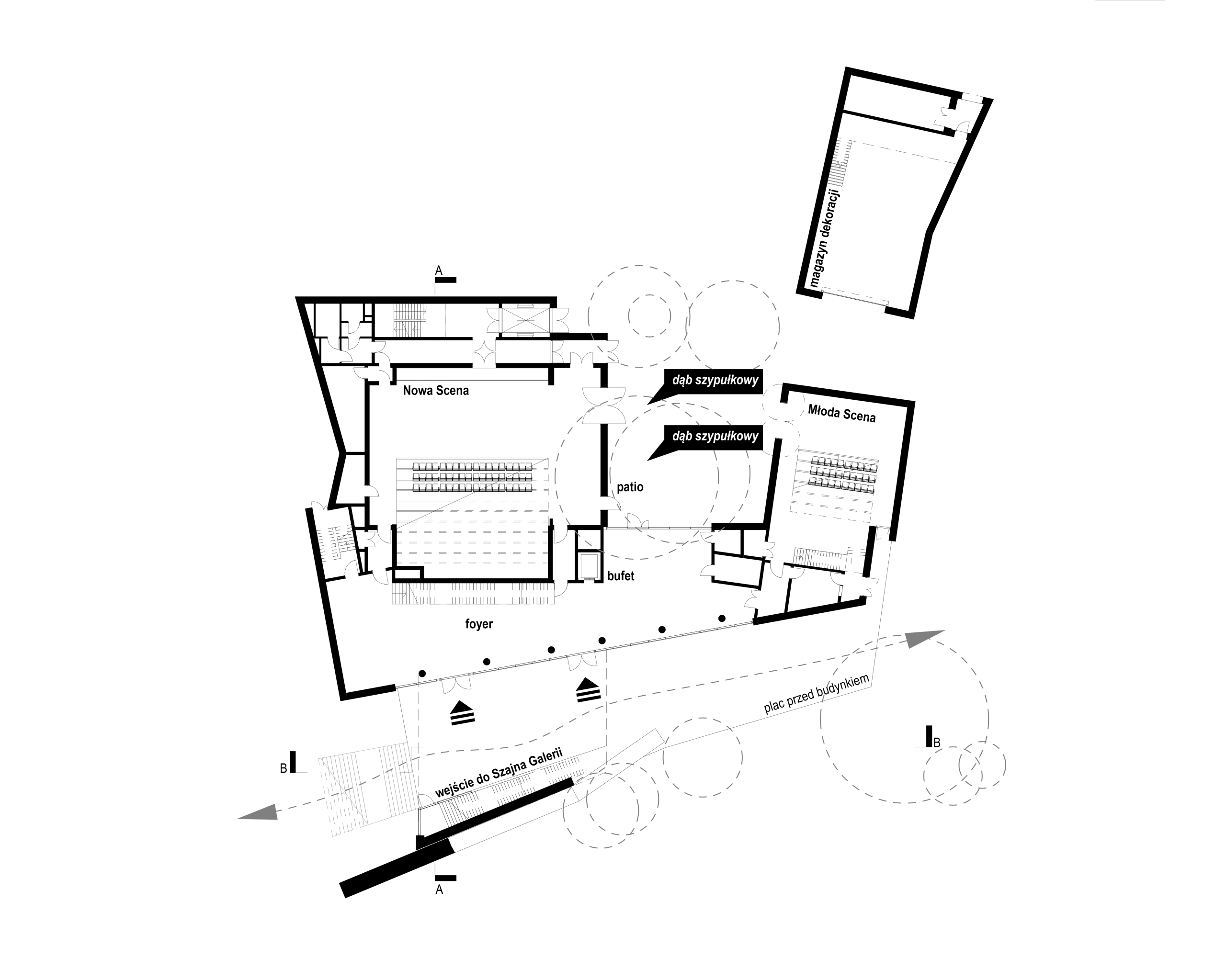 - Two theatre halls: Nowa Scena (180 seats, black box) and Młoda Scena (60 seats), both with flexible arrangements;