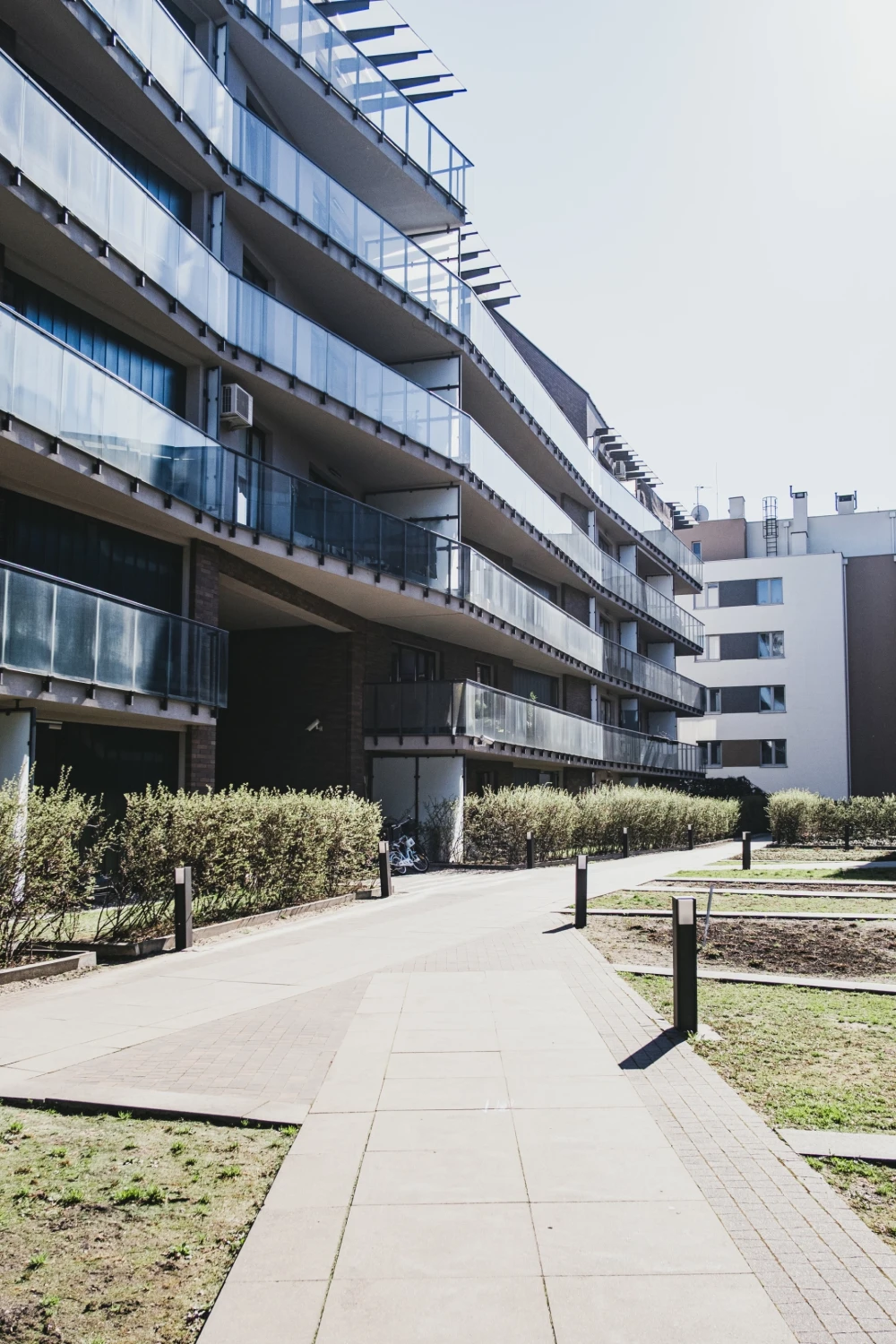 The interiors of the buildings—stairwells and lobbies—are finished with American oak panels, giving them an elegant and natural character. Glazed profiled glass walls gently illuminate the common areas, emphasizing attention to user comfort and the quality of detail. The entire project harmoniously combines contemporary architecture with local tradition and natural surroundings.