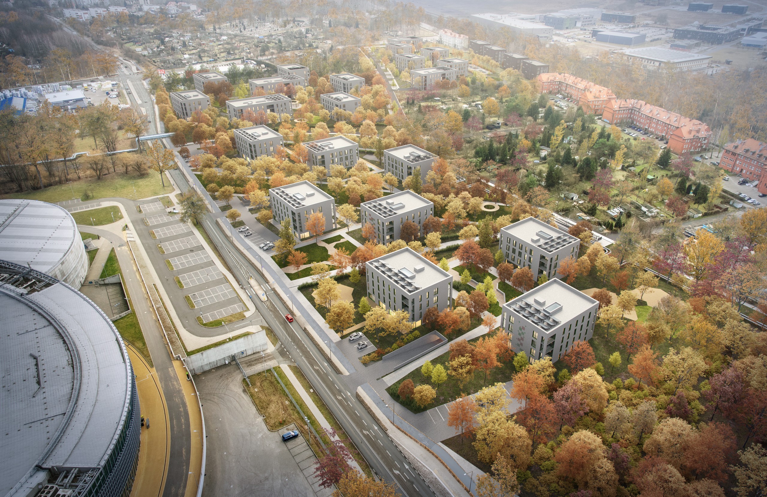 The housing estate in Gliwice was designed in the spirit of a garden city, with respect for the existing landscape and tree cover. It was the greenery, rather than the buildings, that served as the starting point for shaping the concept. Four-story buildings were placed freely among the trees, creating spaces in between that encourage neighborhood interactions, recreation, and relaxation.