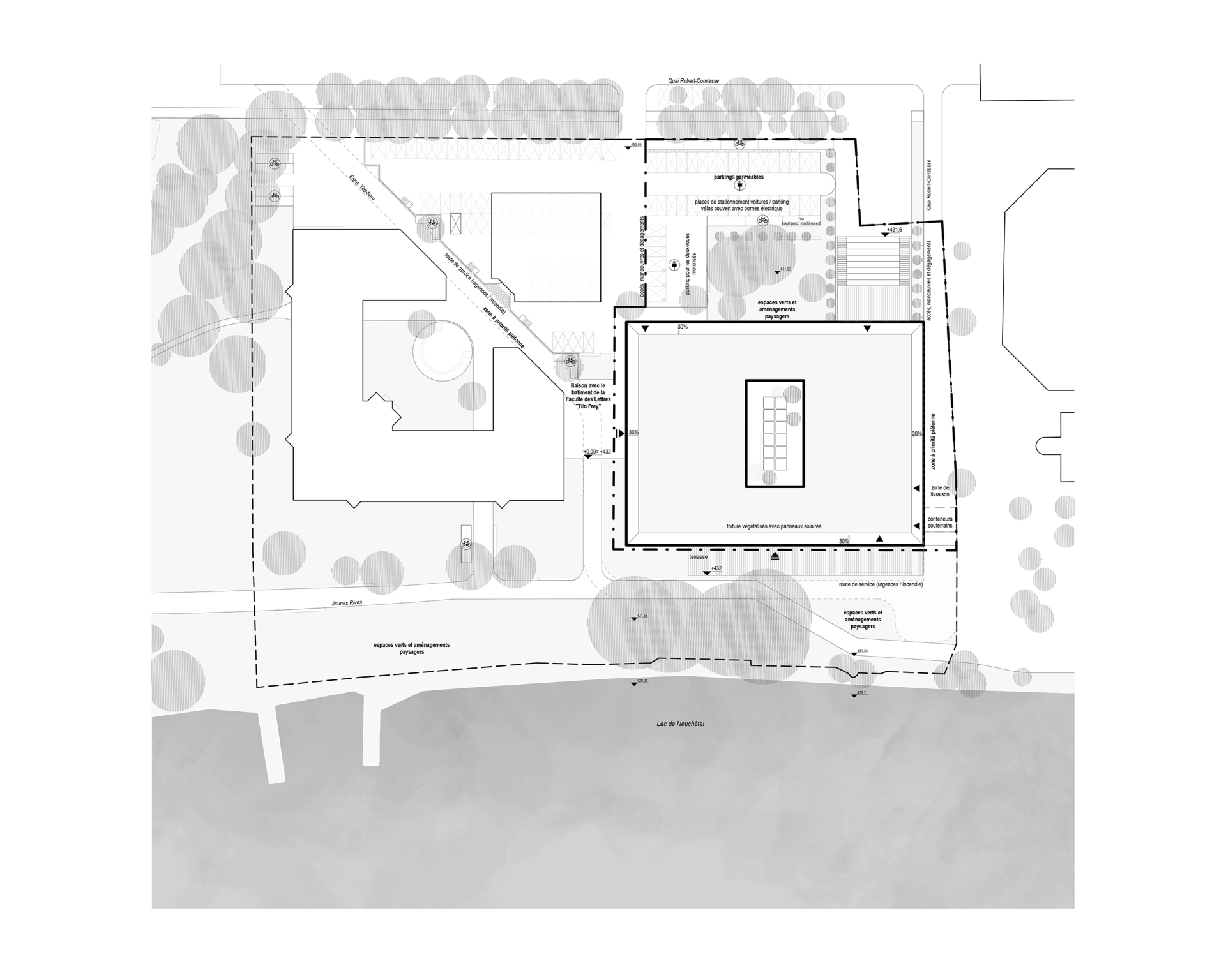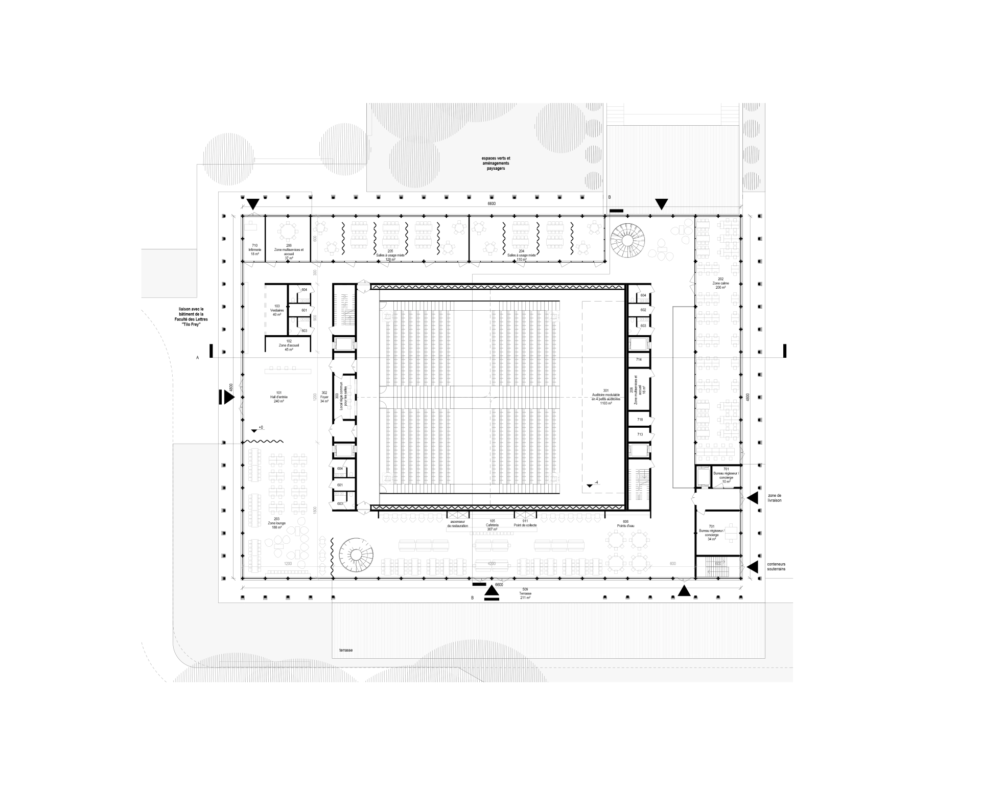 In response to the need for a space that meets the contemporary developmental goals of the University of Neuchâtel, we paradoxically propose a return to the source. The Gaia building, like its mythological namesake, seeks to anticipate the future.