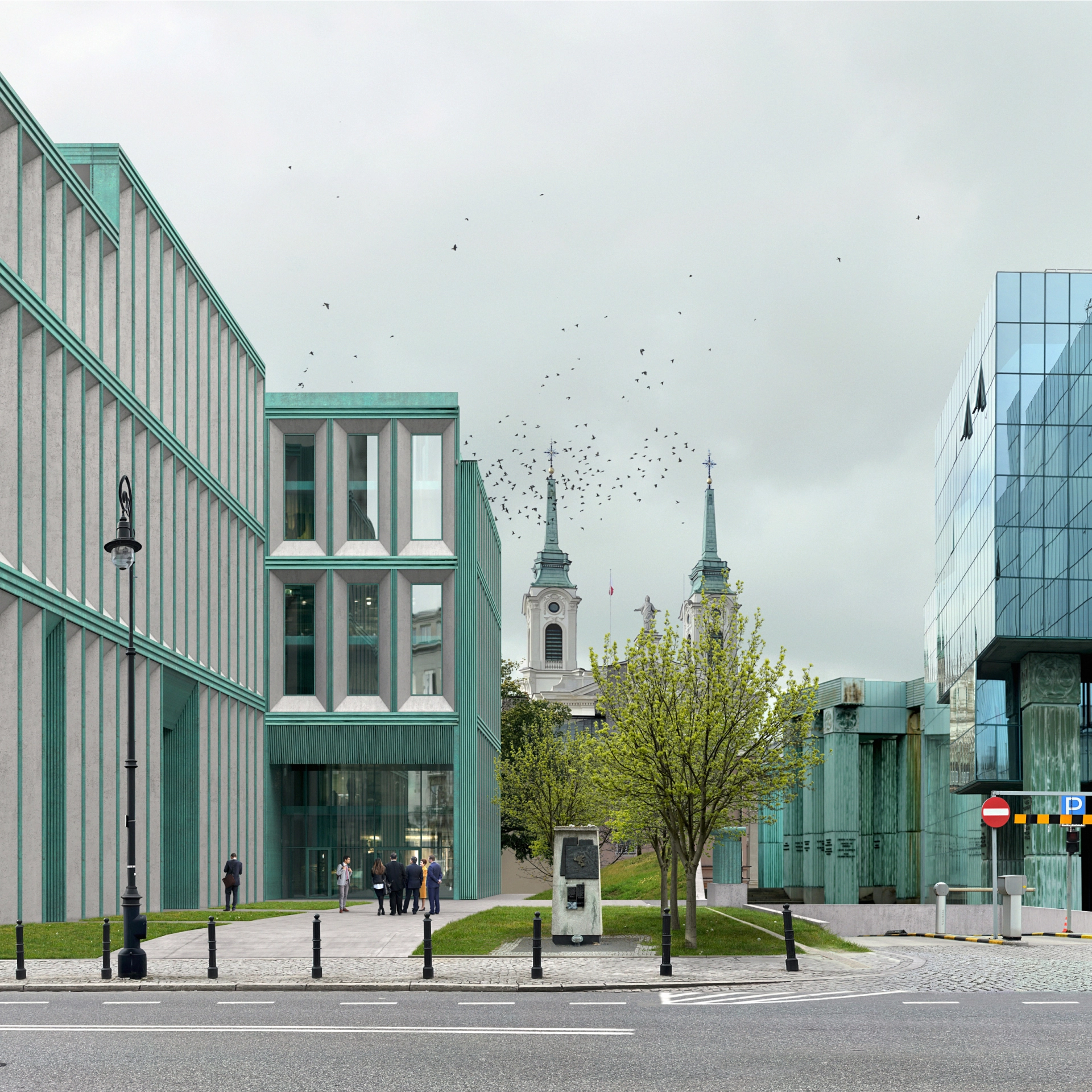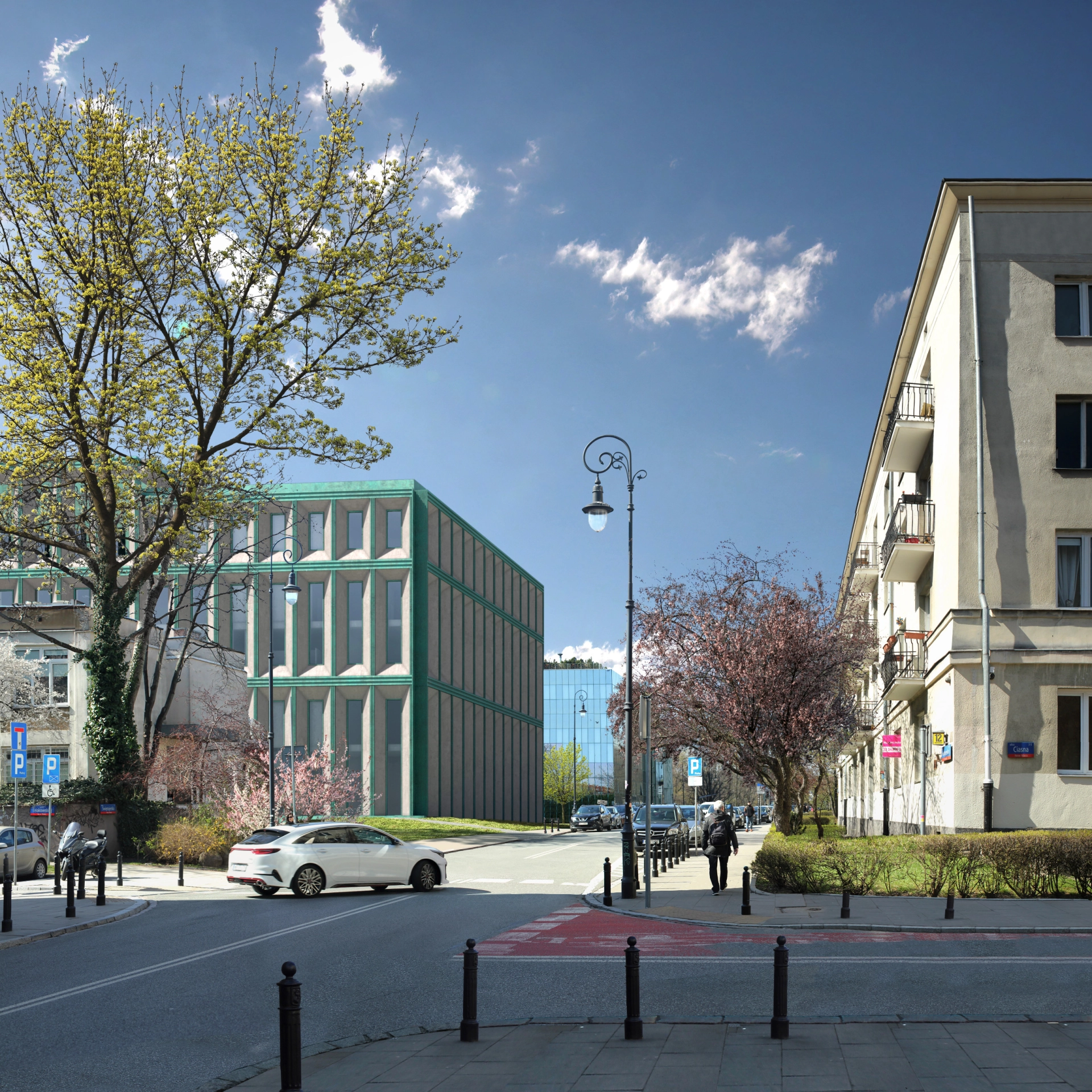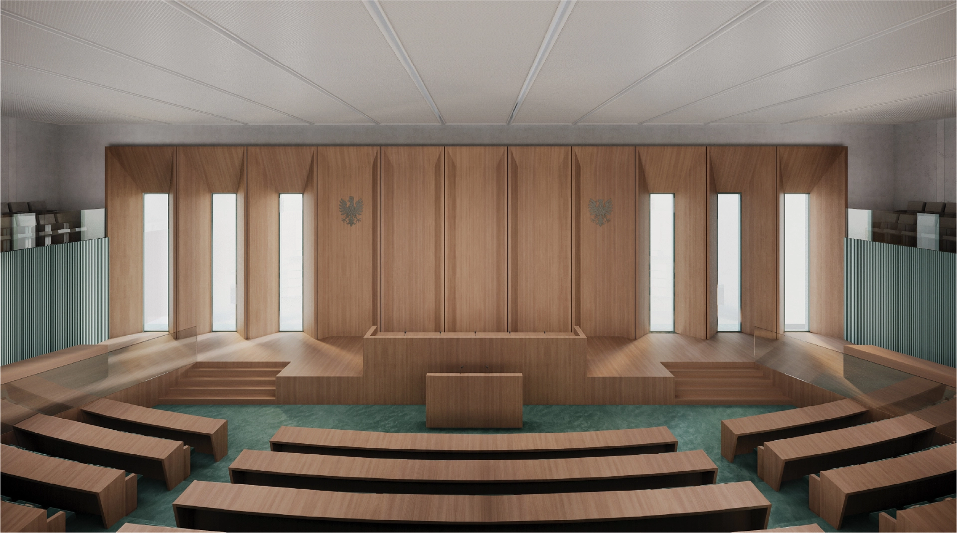 The narrow front of the plot facing Świętojerska Street forced us search for alternative solutions – the main entrances do not face the street, hence the idea for implementing a square. It is intended to draw passersby in and lead them to the Supreme Court, the Court of Appeal, and the seat of the Masovian Voivodeship.