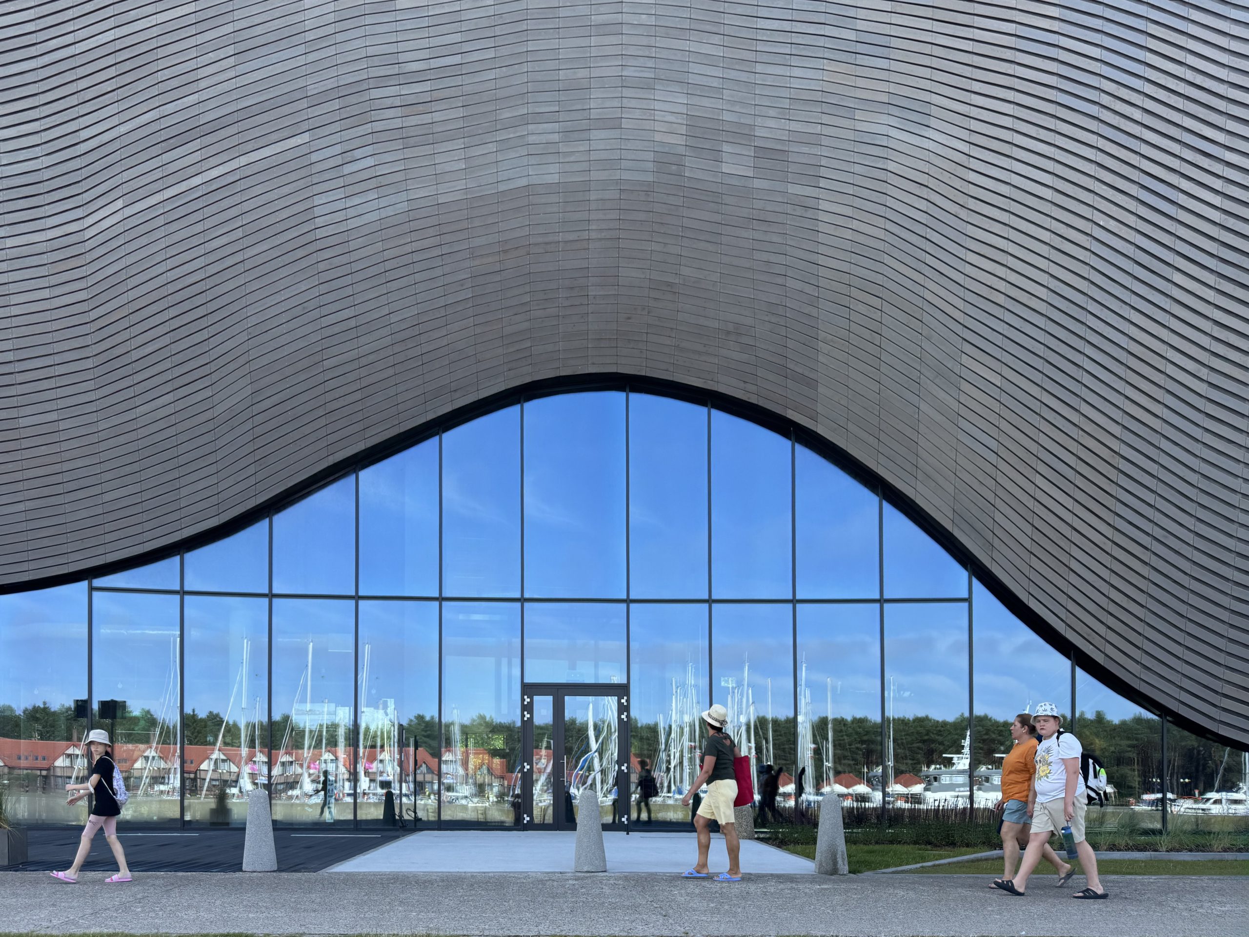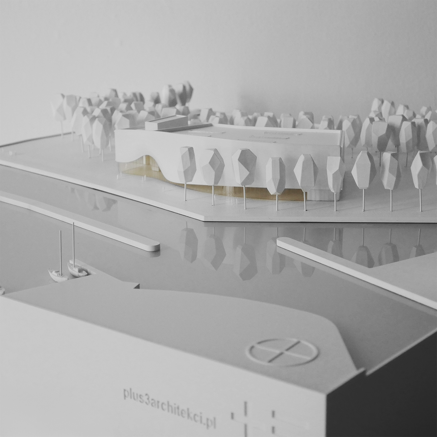 A new branch of the National Maritime Museum in Gdańsk has been established in Łeba, on a plot of land acquired by the institution in 2015. The aim of the investment is to create a modern facility dedicated to underwater archaeology and Baltic Sea fisheries. Our design, selected in a nationwide competition, envisions a compact, dynamic form with a distinctive façade inspired by the natural coastal landscape: the current of the Łeba River, the movement of waves, the hull of a ship, and the distinctive dunes.