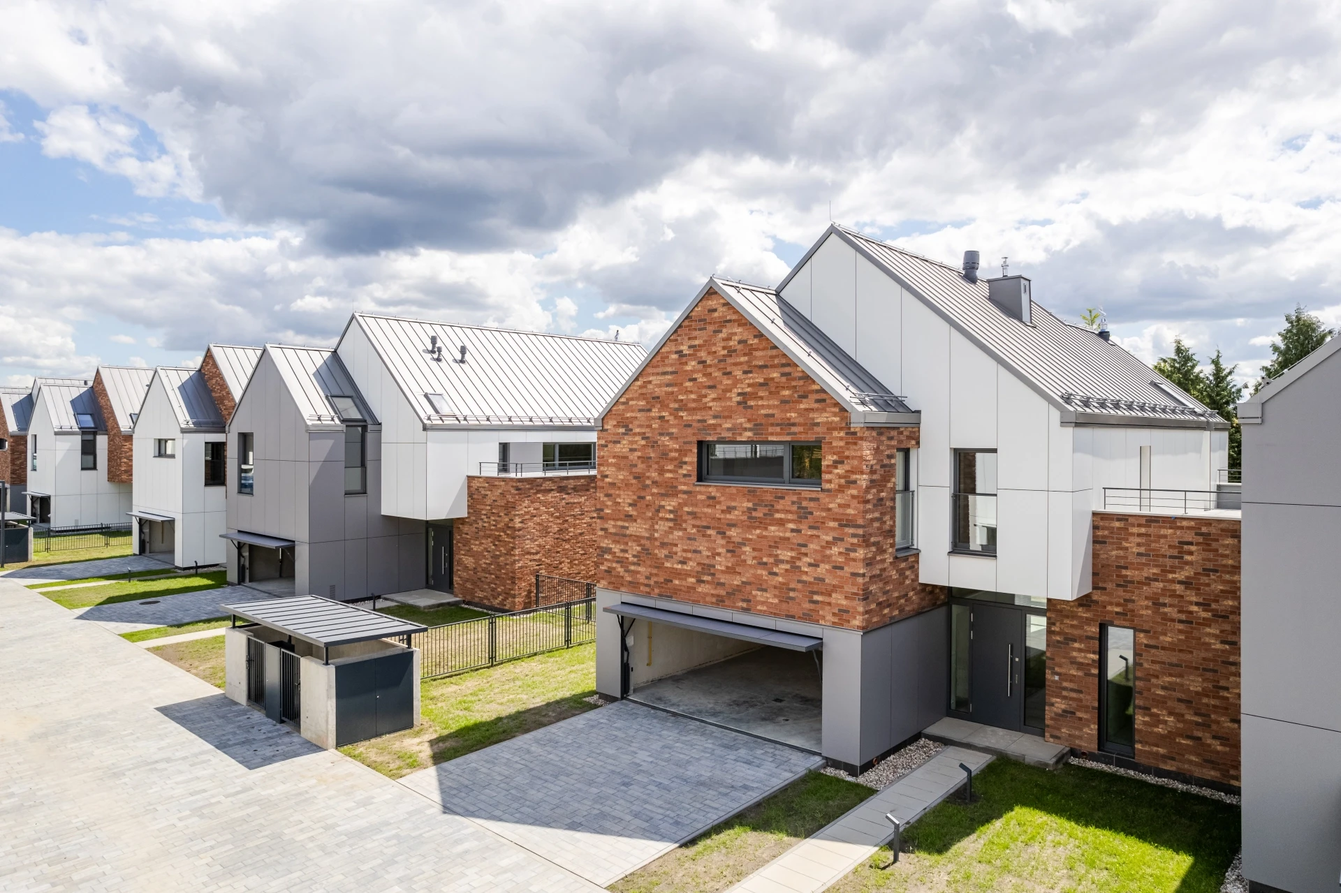 Habitat Wilanów is an intimate estate of single-family houses located in the green, villa district of Warsaw’s Wilanów, in Zawady. The aim of the project was to create architecture that harmoniously integrates with the natural landscape and the local urban context. The houses, with a modern yet understated form, draw on the traditional archetype of the barn – a familiar and well-known shape, reinterpreted with attention to detail, proportions, and noble materials.