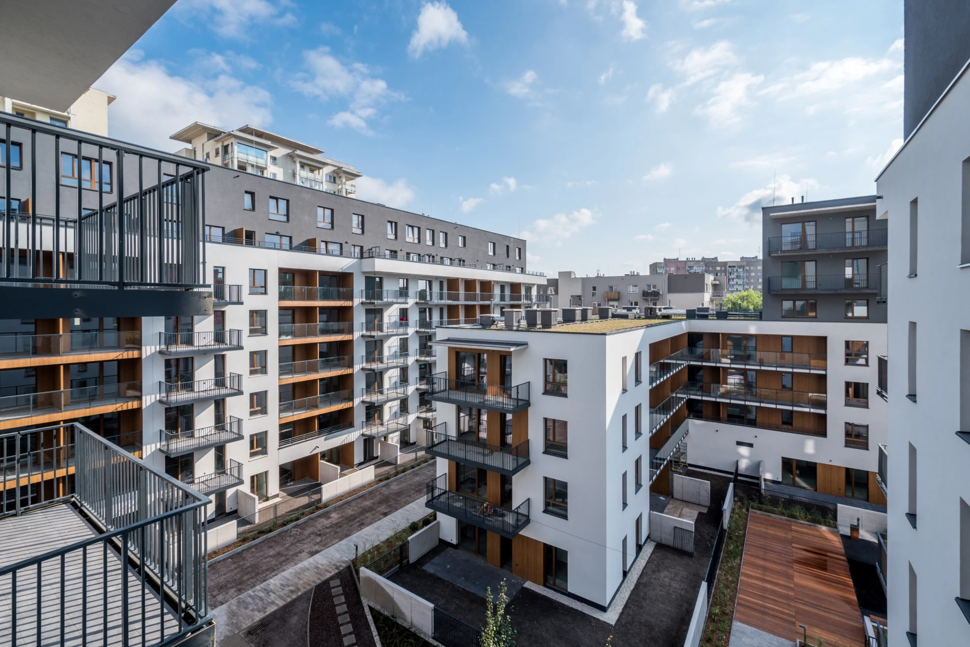 W parterach od strony ulicy Pory zaprojektowaliśmy lokale handlowo-usługowe, które urozmaicają funkcję mieszkalną i wprowadzają życie do przestrzeni miejskiej. Mieszkania o zróżnicowanych metrażach - od kompaktowych kawalerek po przestronne, 4- i 5-pokojowe apartamenty - odpowiadają na różnorodne potrzeby mieszkańców. W północnym budynku na ostatniej kondygnacji lokale wyposażyliśmy w dodatkowo w antresole i duże tarasy na obu poziomach, podnosząc komfort i atrakcyjność przestrzeni mieszkalnej.