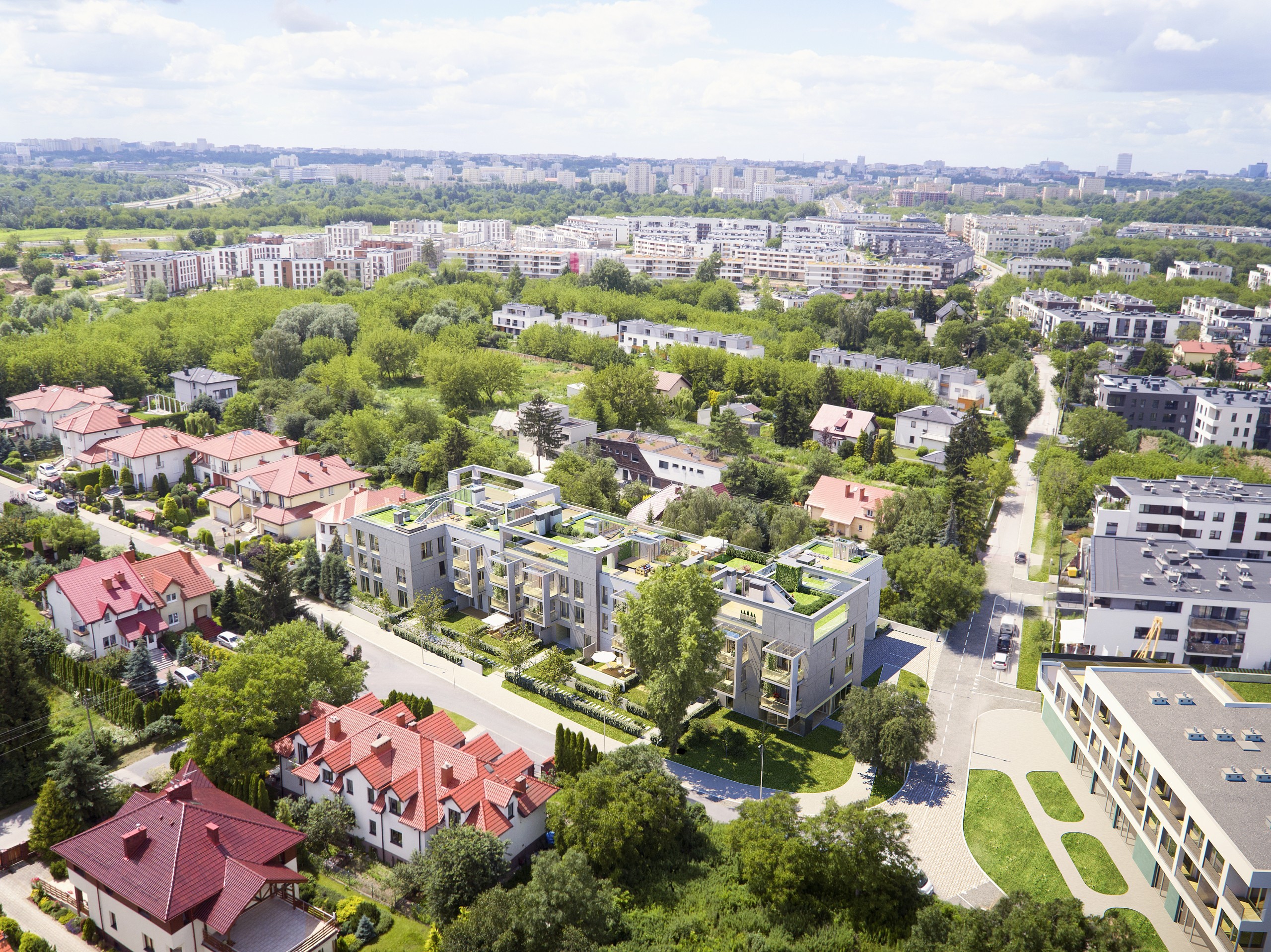 Kameralny 3 kondygnacyjny apartamentowiec w cichej okolicy, na Dolnym Mokotowie, u zbiegu ul. Bluszczańskiej i Kątnej. Zaprojektowano lokale mieszkalneo powierzchniach 41-155 m2. Na parterze, przy miejskim placu, przewidziano 2 nieduże lokale usługowe.