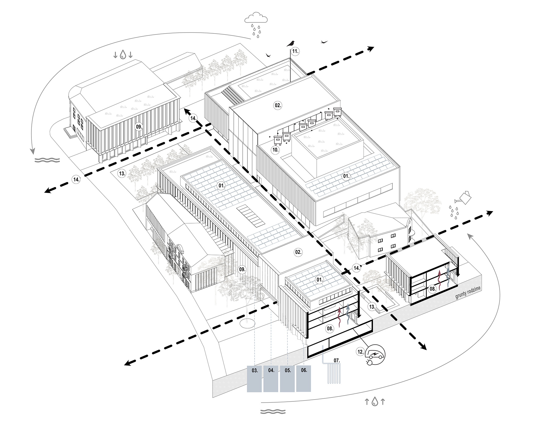 To więcej niż zespół budynków – to otwarty system miejskich przejść, scen i relacji. Architektura, która nie dominuje, ale współgra – z miejscem, z mieszkańcami, z rytmem dnia.
