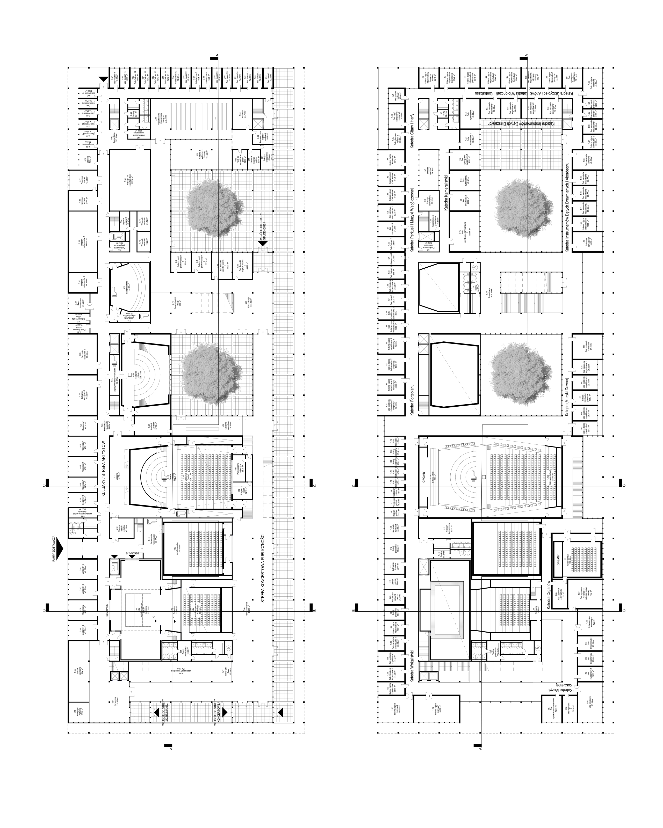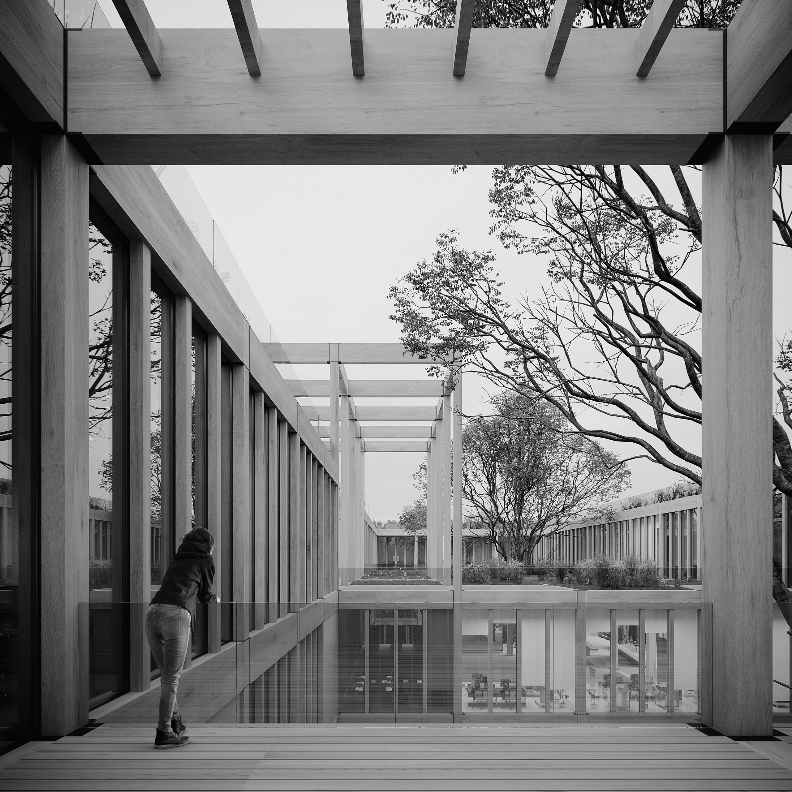 Ponad 23-metrowe jesiony górują nad dachem budynku roztaczają życiodajny cień w patiach, w których najmniejszy wymiar to 24m x 24 m w parterze, na kolejnych kondygnacjach przestrzeń ta jeszcze bardziej się otwiera i zaprasza na kolejny poziom, jakim jest dach. Stąd pomiędzy koronami drzew, dostrzec można Wisłę, czy panoramę Krakowa. W nowej Akademii znajdziecie nieskończoną ilość nietuzinkowych, intymnych kadrów, miejsc kontemplacji, spokoju, ale także tętniących muzycznym, studenckim życiem przestrzeni, gdzie wnętrza i zewnętrza łączą się w łagodnej symbiozie natury i cywilizacji.