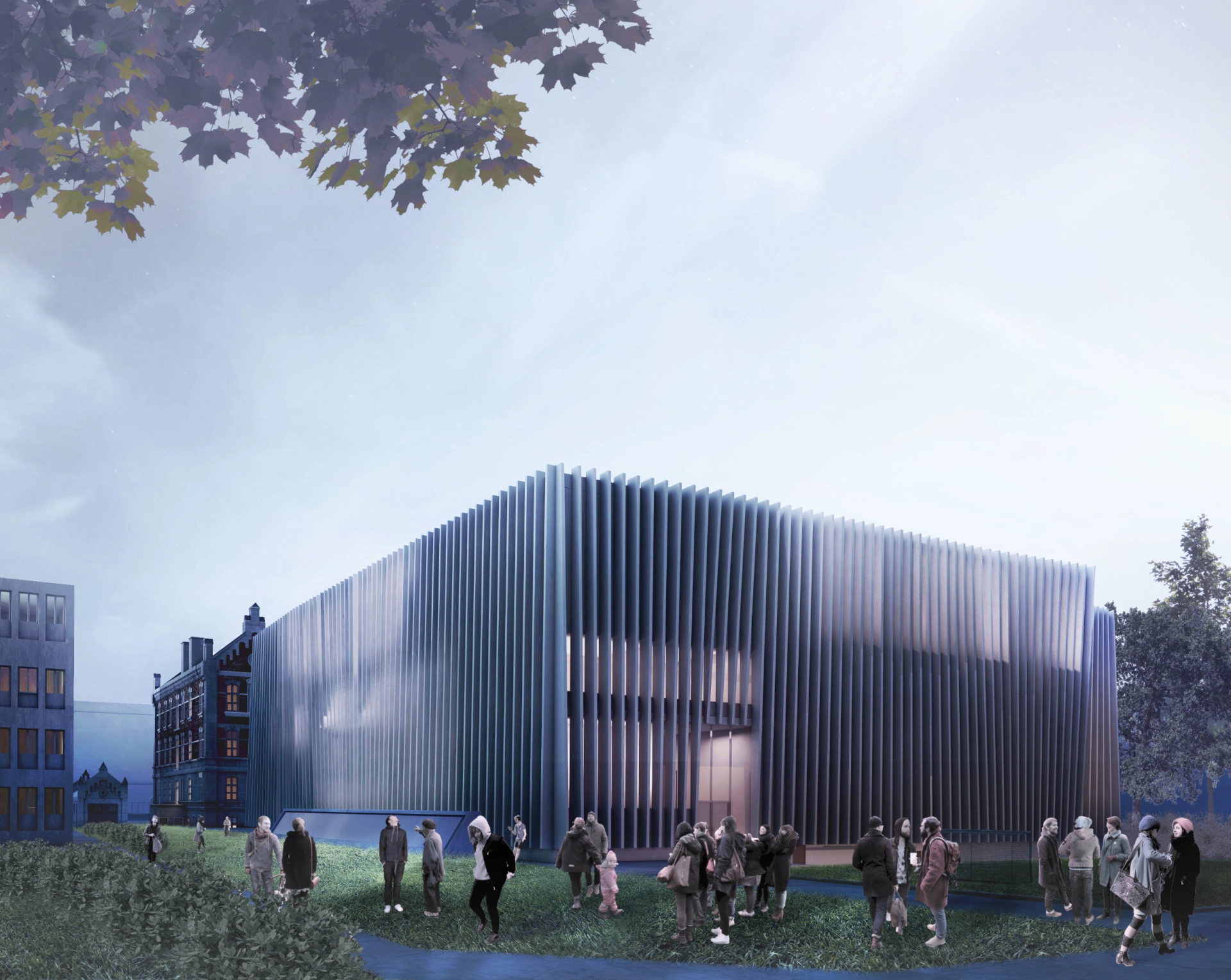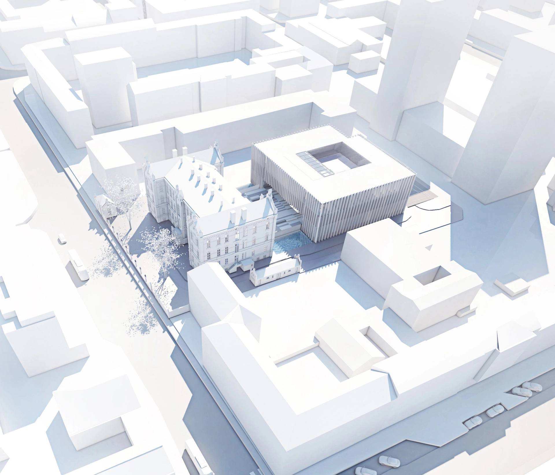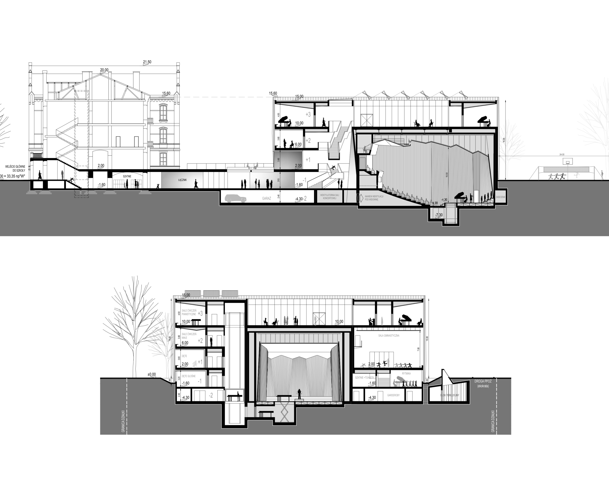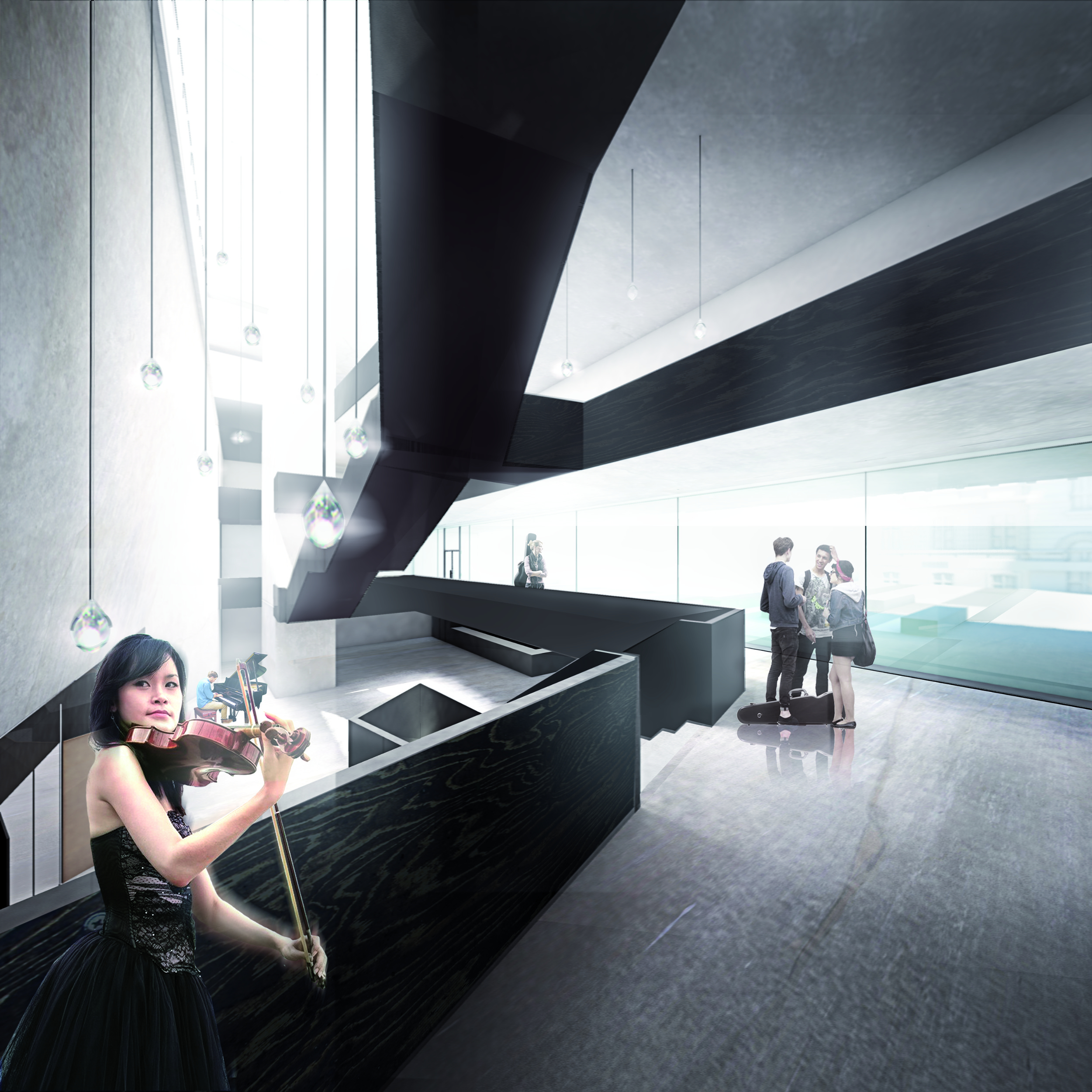 Nowy gmach Zespołu Szkół Muzycznych został zaprojektowany jako „nastrojony instrument” - współbrzmienie tradycji i nowoczesności. Urbanistycznie tworzy dialog z zabytkowym Domem Sierot przy Rakowieckiej, pozostając w osiowym układzie i zachowując szacunek dla historycznej kompozycji. Jasna, minimalistyczna bryła o rytmicznej elewacji z pionowych żaluzji kontrastuje z ceglaną strukturą sąsiedniego budynku, tworząc spójny konsonans form i barw.