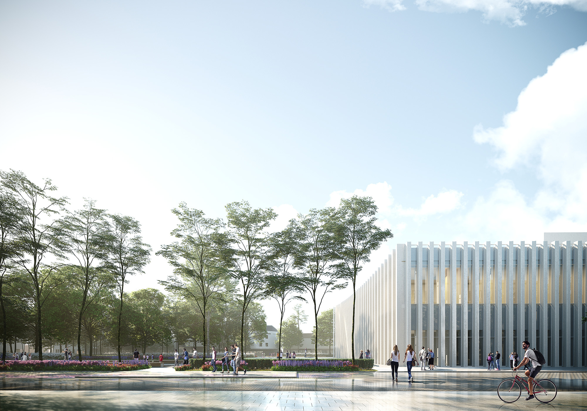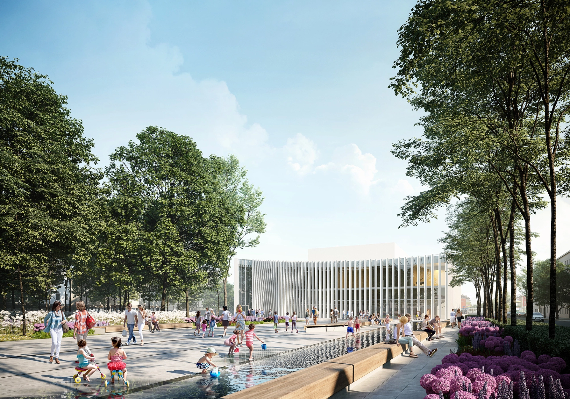 Integralną częścią założenia urbanistycznego jest plac zlokalizowany przy głównym wejściu, stanowiący pełnoprawną, miejską przestrzeń publiczną. Dzięki bezpośrednim powiązaniom z komunikacją zbiorową i pieszą plac ten działa jako aktywny węzeł miejski, a zarazem czytelna zapowiedź strefy kultury.