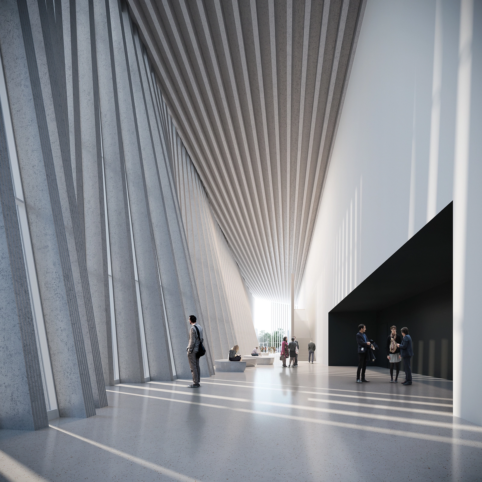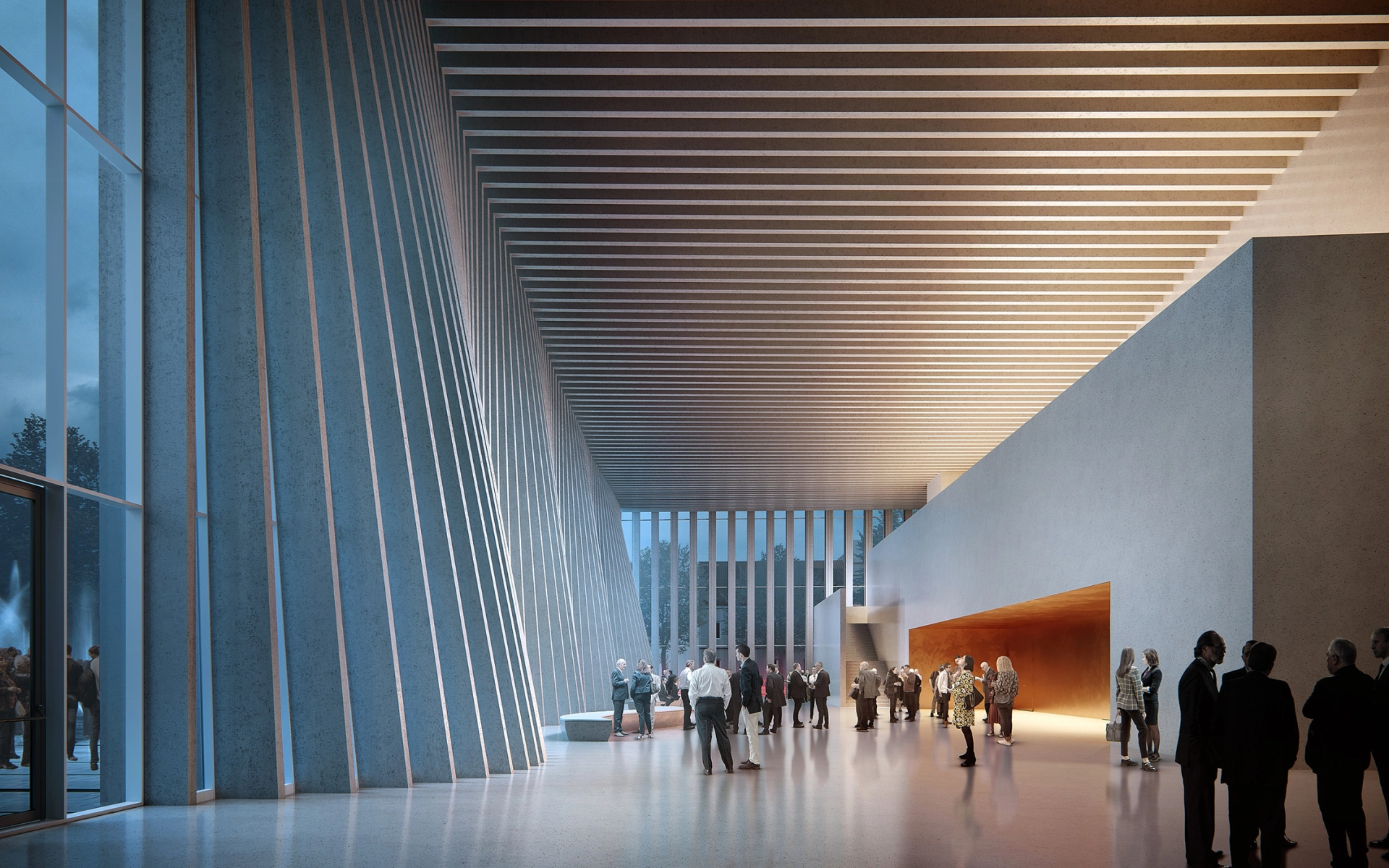 Zaprojektowaliśmy również osobne wejścia dla chóru oraz infrastrukturę techniczną: dostawy, zjazd do podziemnego garażu oraz miejsca postojowe dla autokarów. Całość stanowi funkcjonalny i zrównoważony kompleks kultury, zaprojektowany z myślą o trwałości i wysokiej jakości użytkowania.
